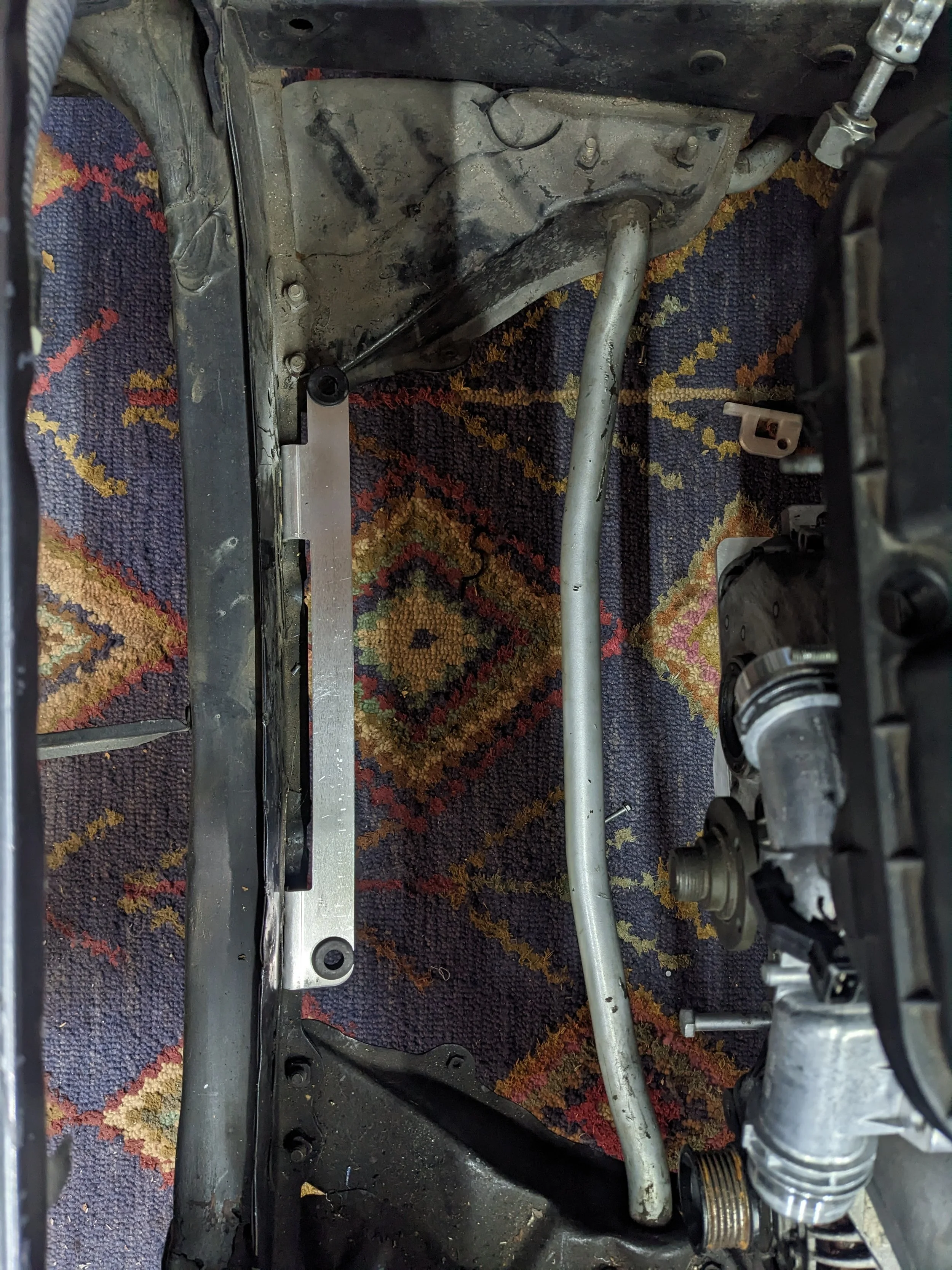 Power steering, fuel system changes, and wiring are next.