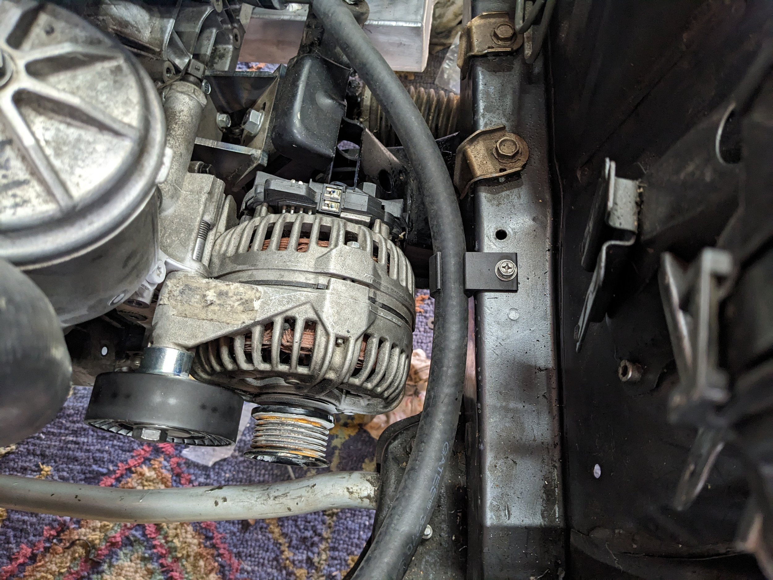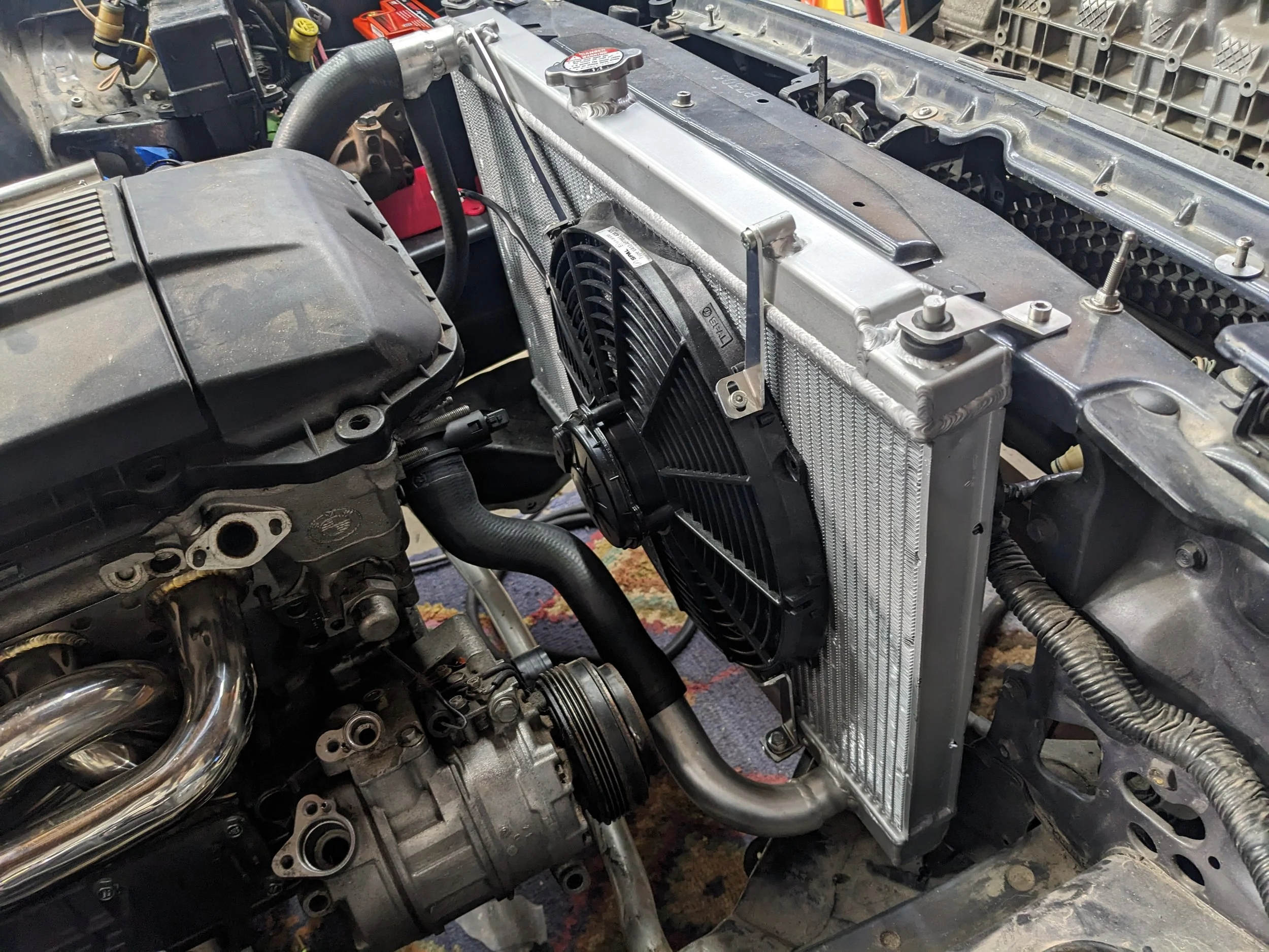 I ended up needing to cut the radiator outlet off and shorten it to add some clearance for the AC. 3D printed a hold for the heater return line. I will re-visit routing clips and stuff once all the systems are done.