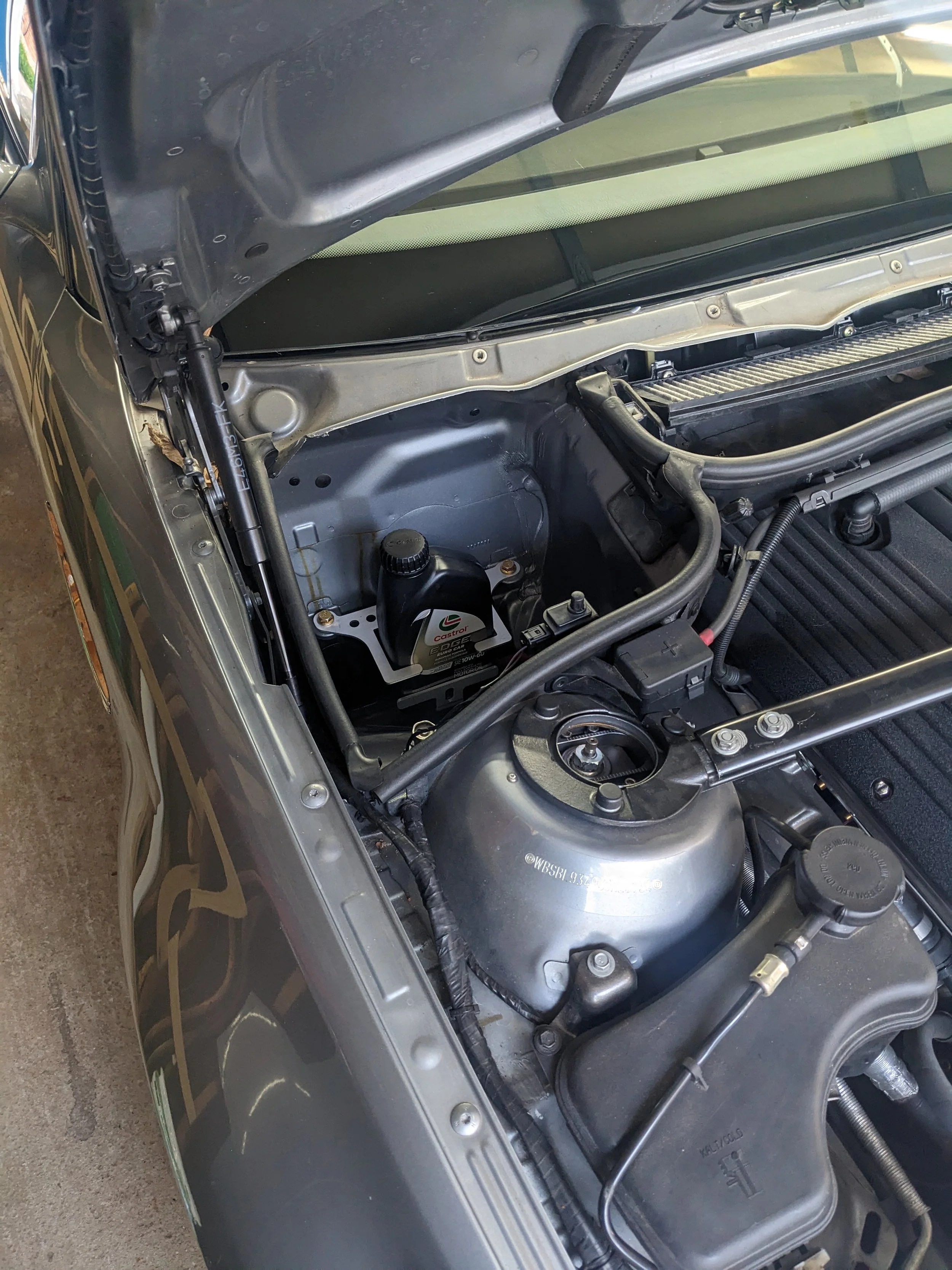 Got distracted and designed these cheeky oil quart brackets for E46 engine bays. My current E46 does not require these but my previous one did and I hated carrying a spare in the trunk. Ultimately, I will use this scan to create a kit that allows for a small lithium battery to mount in the engine bay. 4-cylinder cars (and maybe diesels) use a engine bay battery. Folks on “the forums” tell me the E46 battery cable is ~20lbs, plus the ~30lbs savings I will get with a smaller lithium battery. The battery will be expensive but it should be high weight savings per dollar. I will mess with this once the Supra is finished.