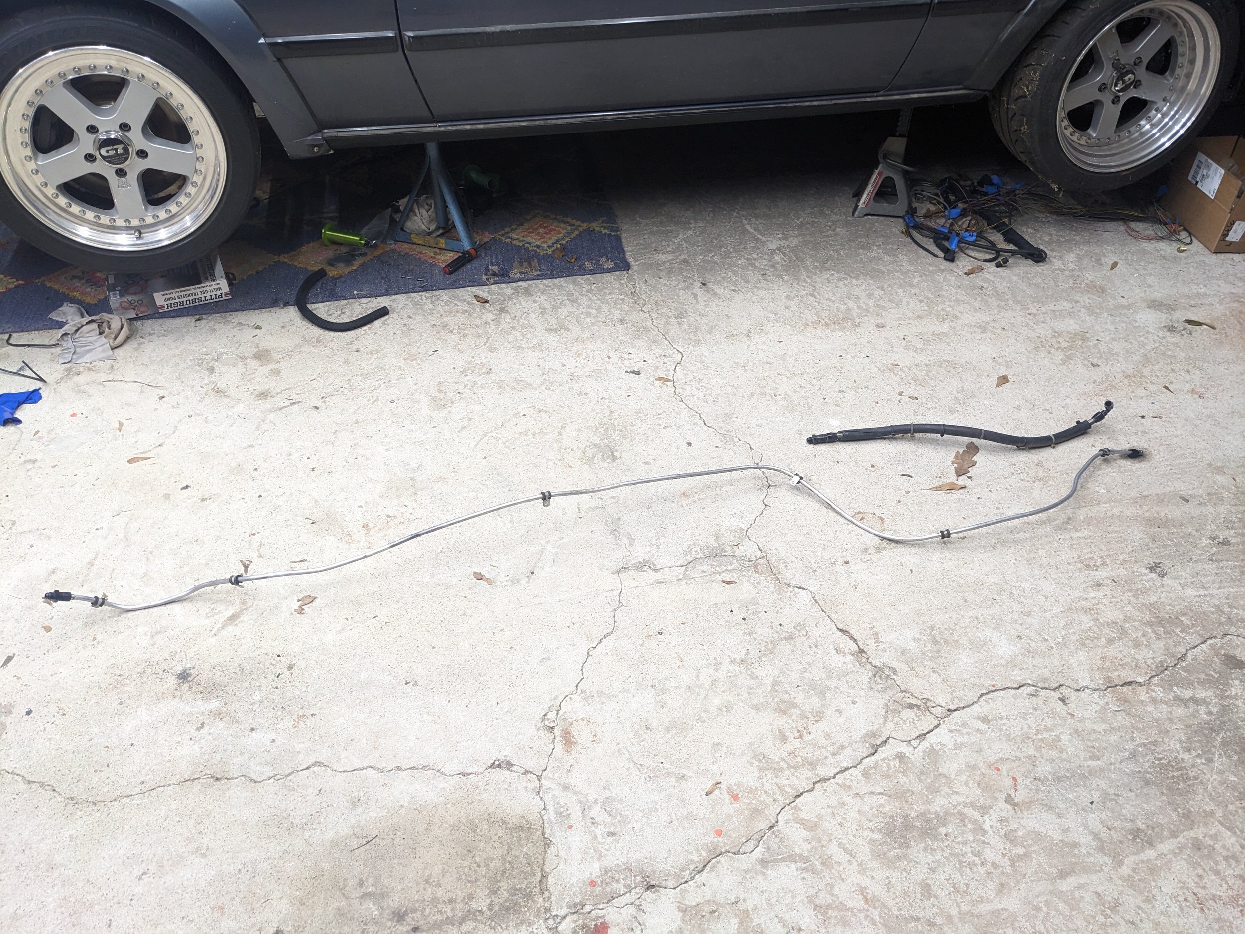 I also removed all the old fuel LS swap fuel lines to make way for newer, E85-friendly lines. The factory fuel lines didn’t work with the left side exhaust on the V8. Factory lines would probably work great here but these cars are 40 years old and those parts are rare. These were not as hacked together as I remember but they will be much nicer this time around.