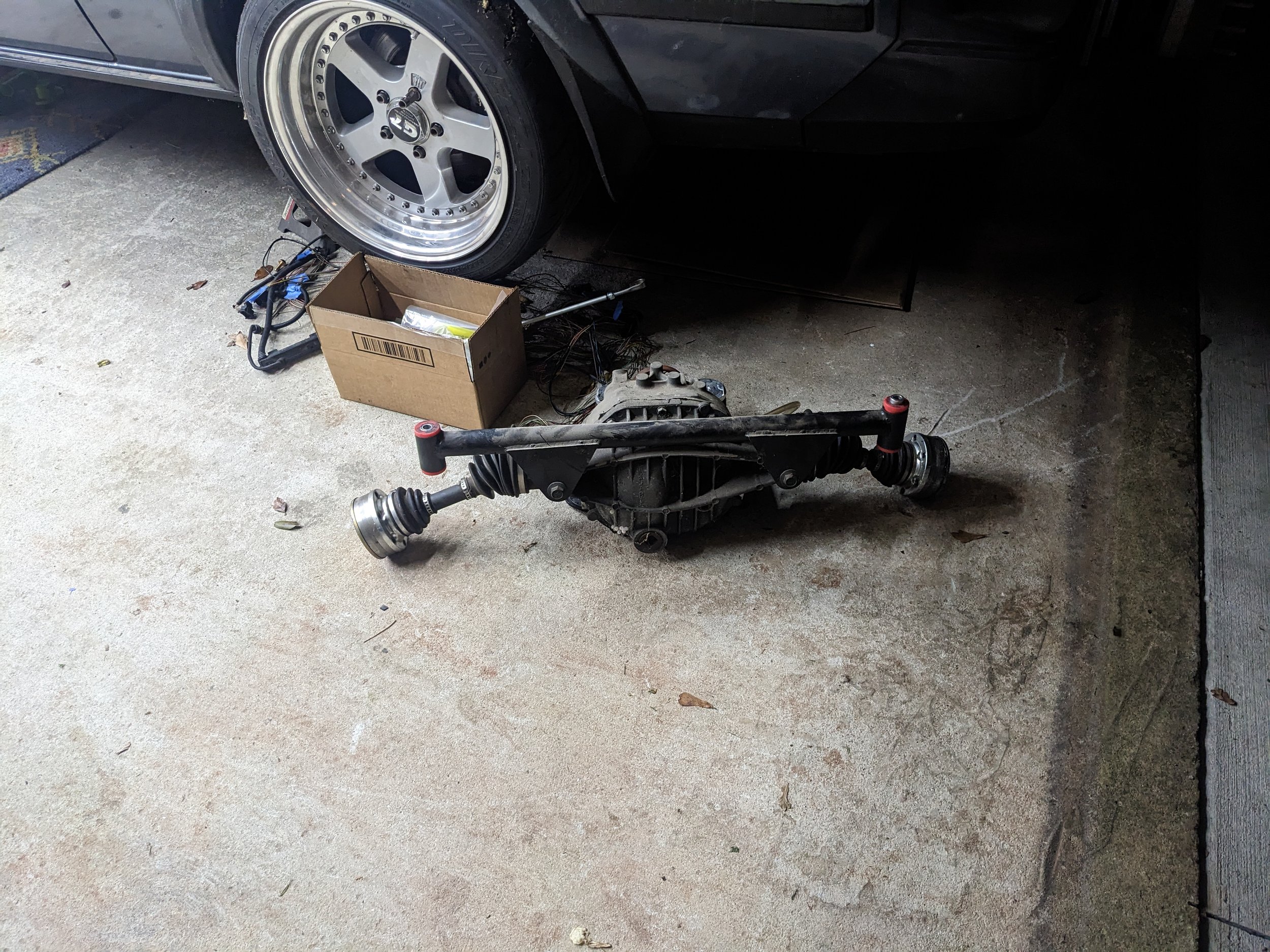 Started removing the 8.8 set-up to go back to a Toyota diff as well. I didn’t really want to deal with this, but the common factory gear ratios(4.10, 4.30) are what I need for this engine. The 8.8 in the car has a 3.42 to match the old V8. Although I could re-build it with the correct ratios, that would ironically be more expensive. I also don’t need the durability of the 8.8 with this motor. I have almost everything I need to do the “un-swap”, I just need to get camber tabs made for my spare subframe and do the cut/weld mods. There is some weight savings here as well but I’m not sure how much. Hopefully I can re-coup some money by selling the complete 8.8 “kit” to someone with big power.