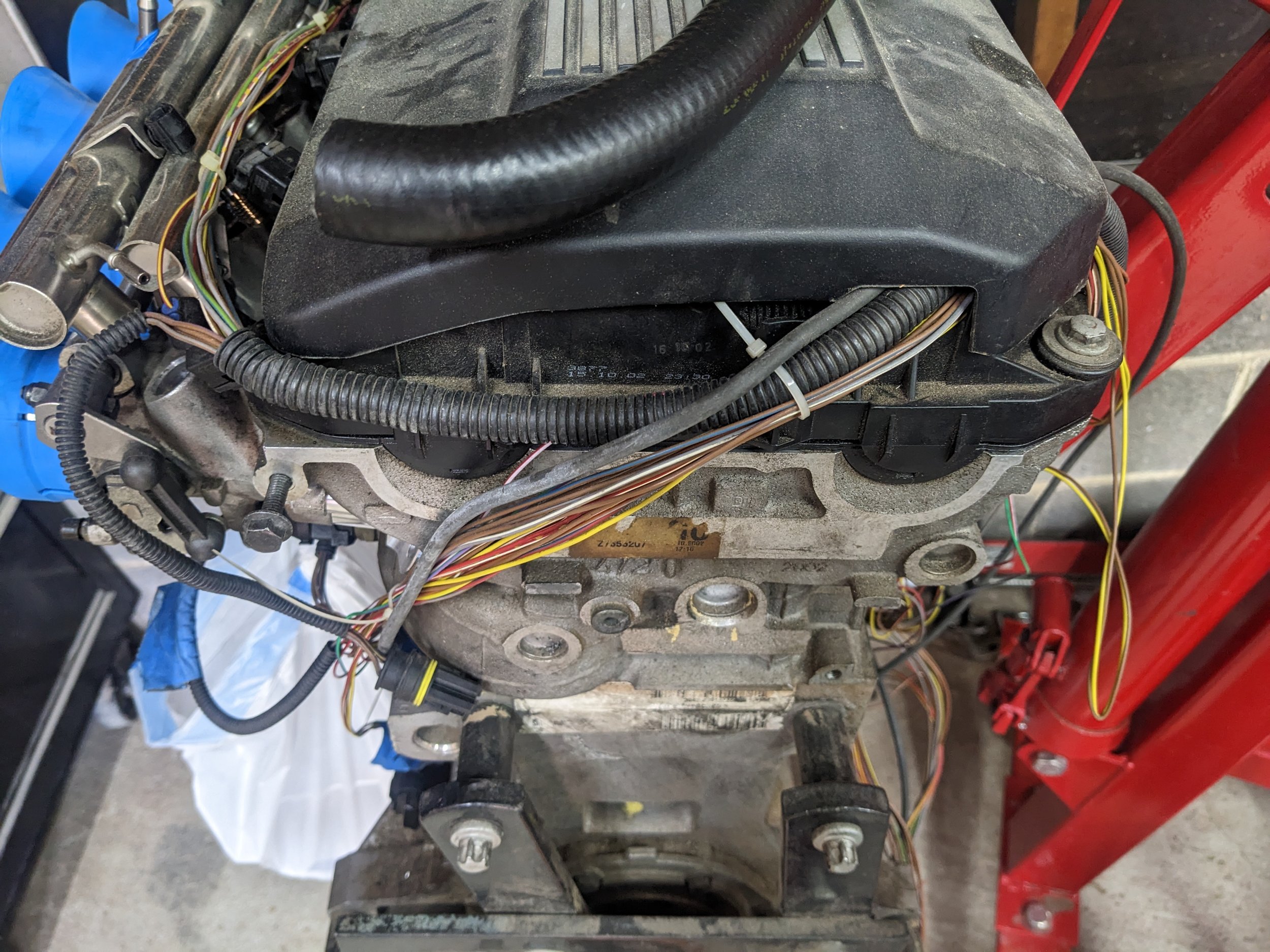 Started trimming the wiring harness. I realized I’m missing the secondary harness that controls some relays and fuses so I will need to track one of those down. So far, the E39 “main harness” lengths fit great and will tuck nicely along the back of the valve cover and the firewall like the OEM Supra harness. I have a couple different “coil harnesses” from E46es and E39es that will all work. I just need to figure out what coils I want to run and buy the right aluminum valve cover. Again, more to come…